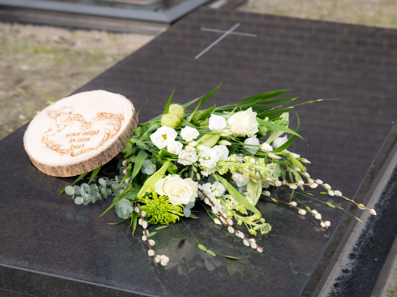 Herdenkingsboeket bij graf